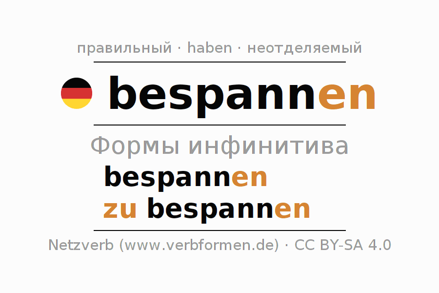 Этот глагол bespannen полностью спрягается во всех лицах и числах Инфинитив Презенс Перфект.