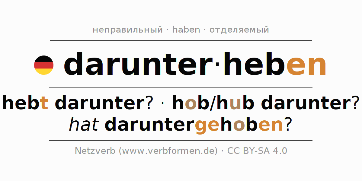 Этот глагол darunterheben полностью спрягается во всех лицах и числах Инфинитив Презенс Перфект.
