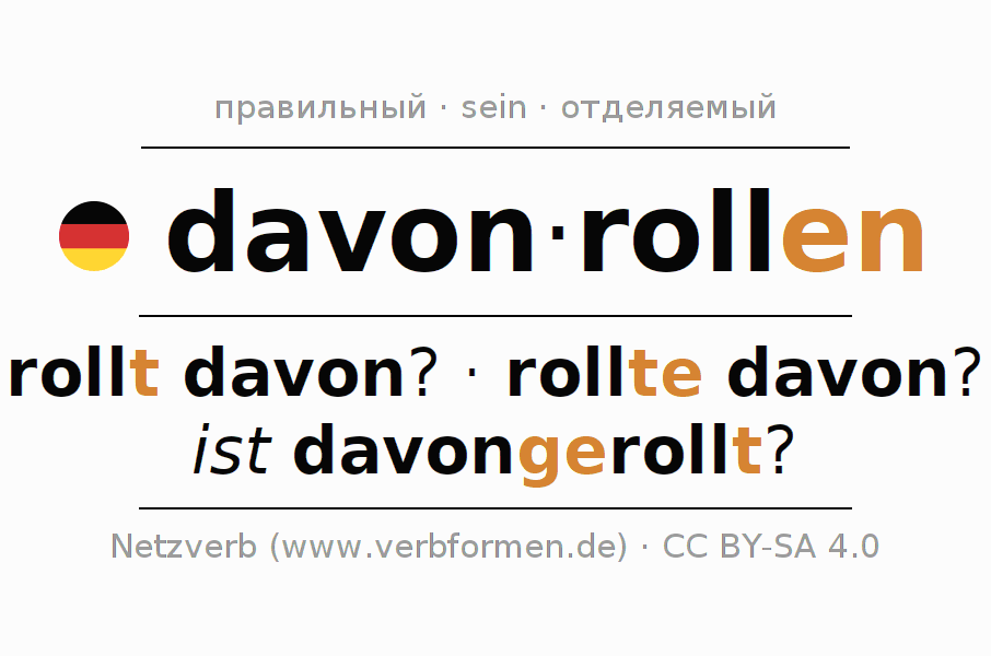 Этот глагол davonrollen полностью спрягается во всех лицах и числах Инфинитив Презенс Перфект.