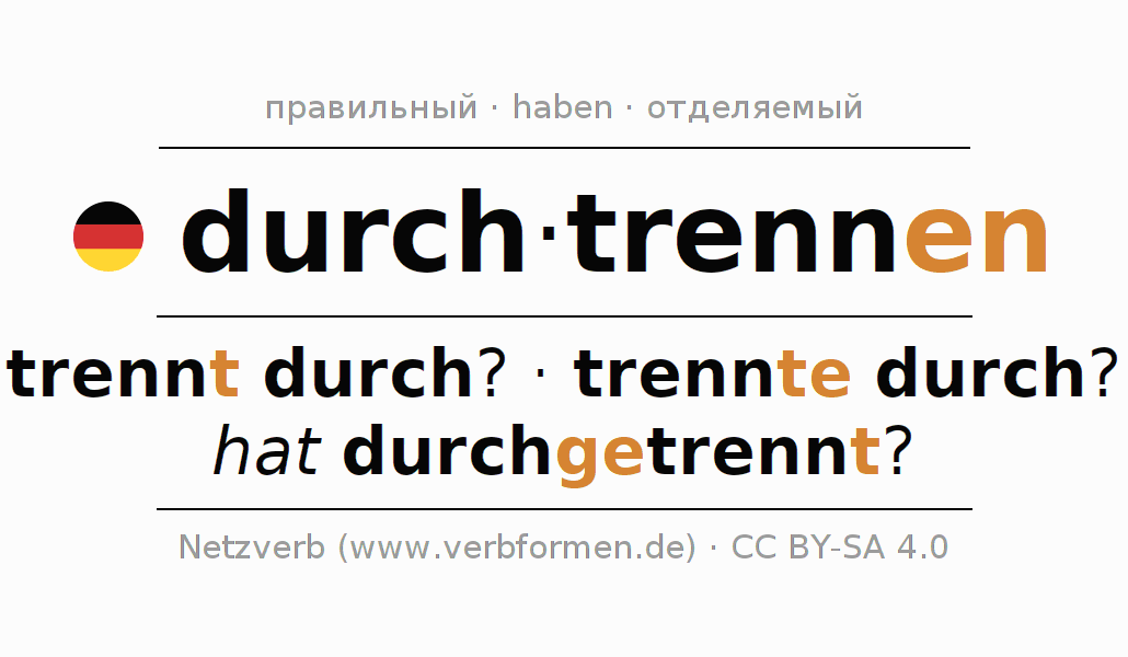 Этот глагол durch-trennen полностью спрягается во всех лицах и числах Инфинитив Презенс Перфект.