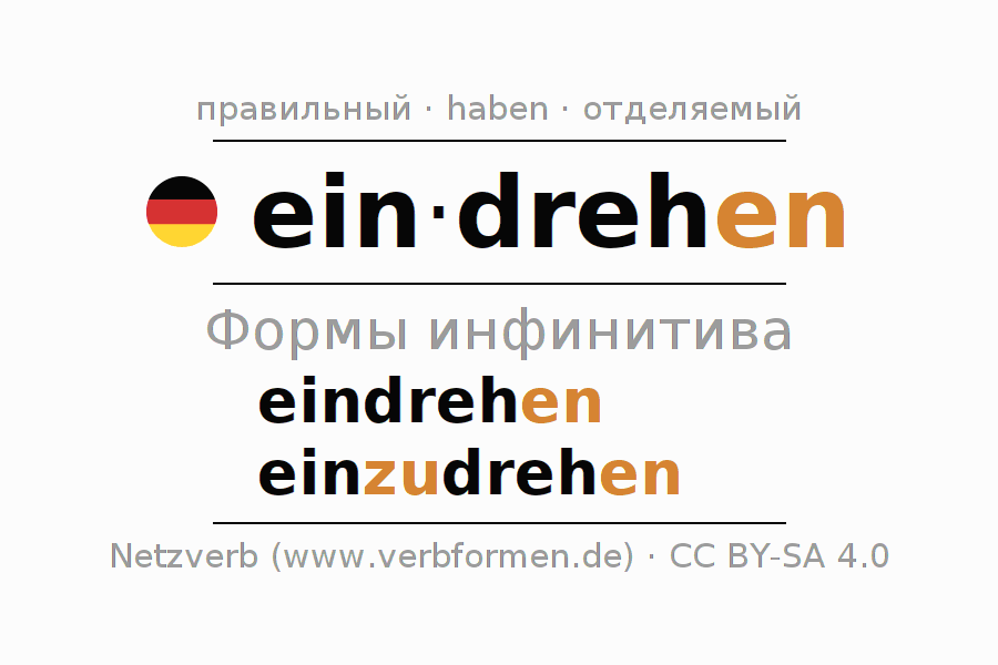 Этот глагол eindrehen полностью спрягается во всех лицах и числах Инфинитив Презенс Перфект.