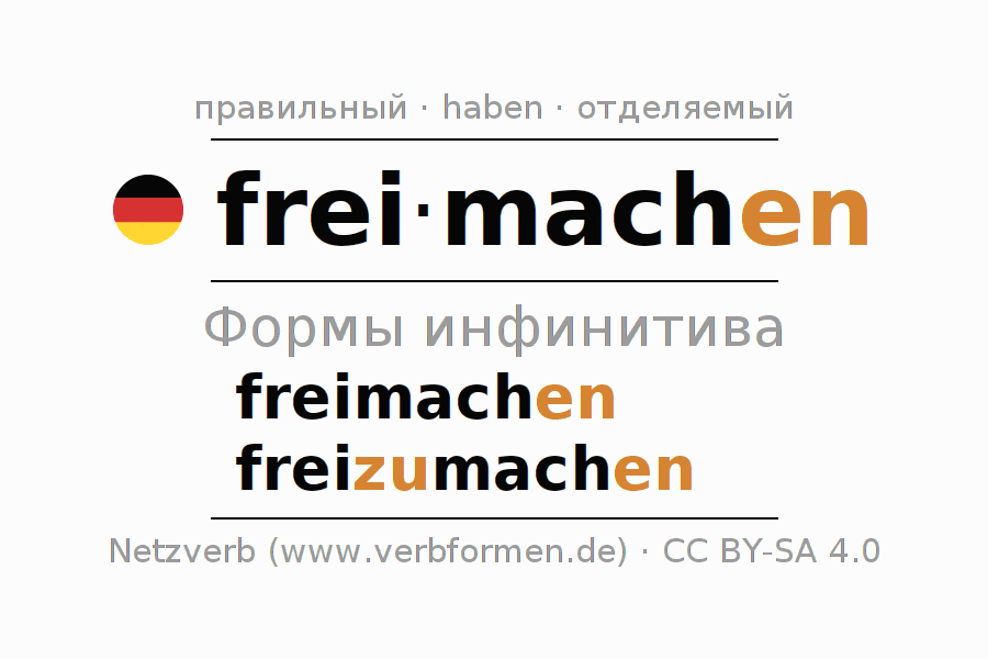 Этот глагол freimachen полностью спрягается во всех лицах и числах Инфинитив Презенс Перфект.