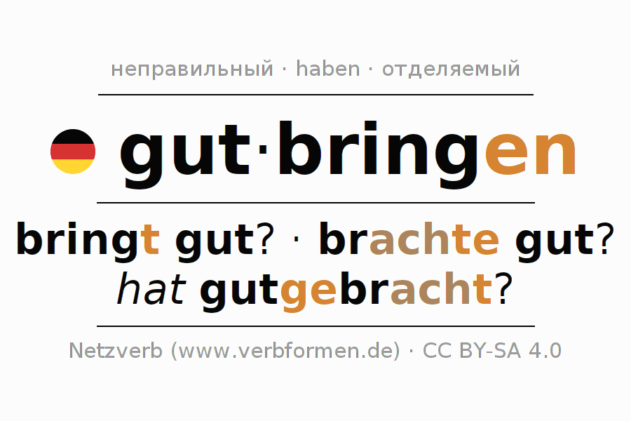 Этот глагол gutbringen полностью спрягается во всех лицах и числах Инфинитив Презенс Перфект.