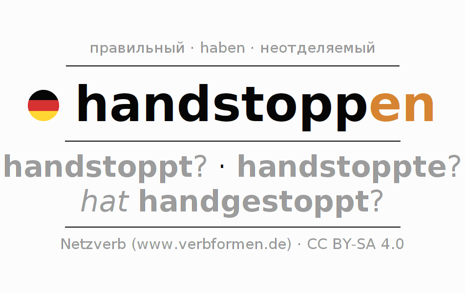 Этот глагол handstoppen полностью спрягается во всех лицах и числах Инфинитив Презенс Перфект.