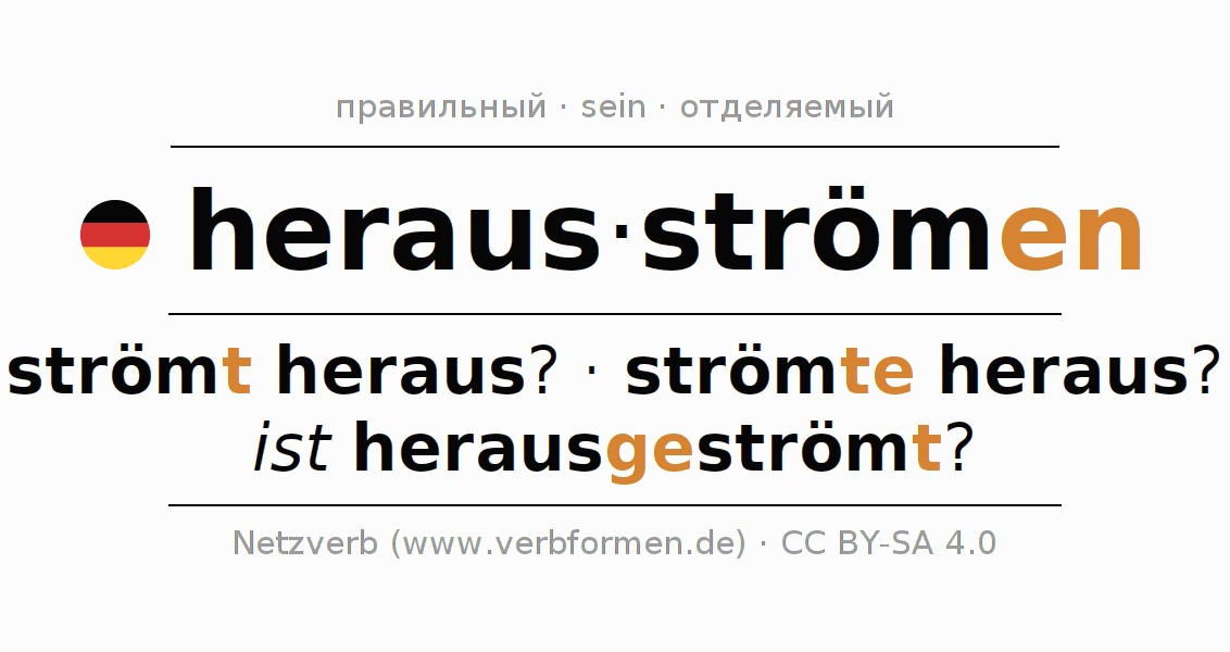Этот глагол herausströmen полностью спрягается во всех лицах и числах Инфинитив Презенс Перфект.