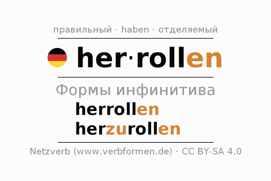 Этот глагол herrollen (hat) полностью спрягается во всех лицах и числах Инфинитив Презенс Перфект.