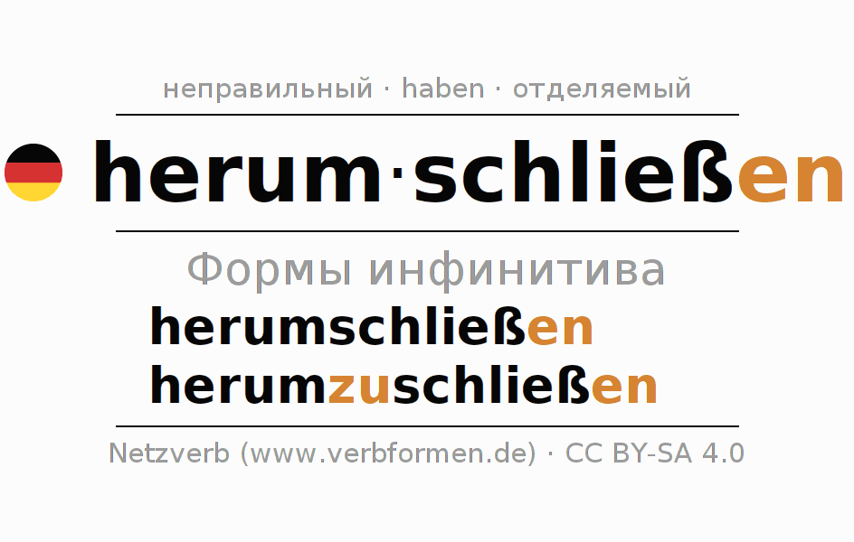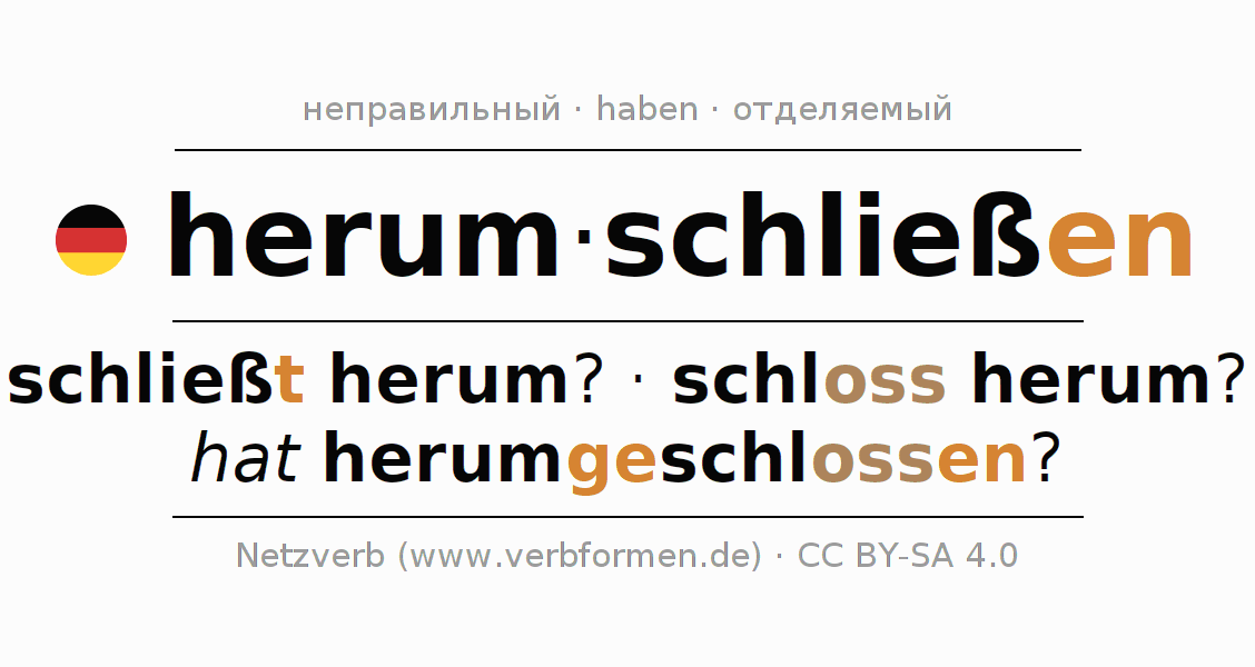 Этот глагол herumschließen полностью спрягается во всех лицах и числах Инфинитив Презенс Перфект.