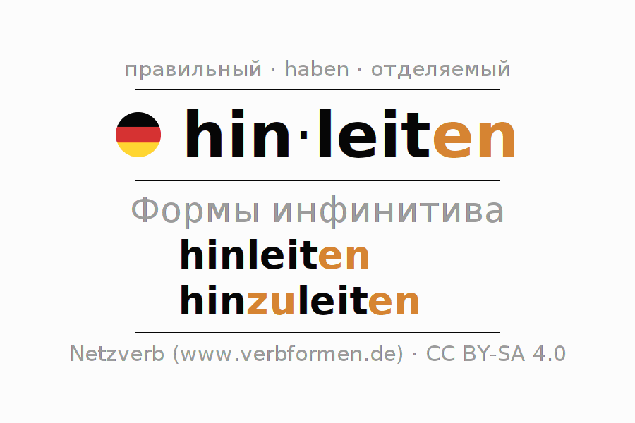 Этот глагол hinleiten полностью спрягается во всех лицах и числах Инфинитив Презенс Перфект.