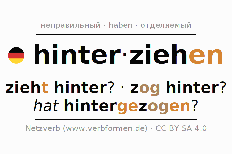 Глагольные формы в Инфинитив hinter-ziehen (hat)