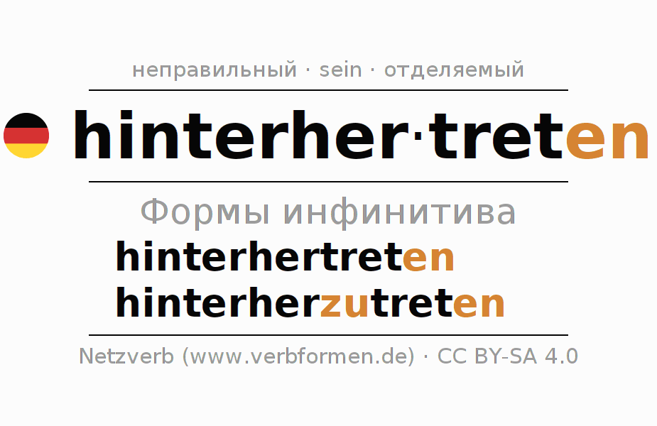 Глагольные формы в Инфинитив hinterhertreten (ist)