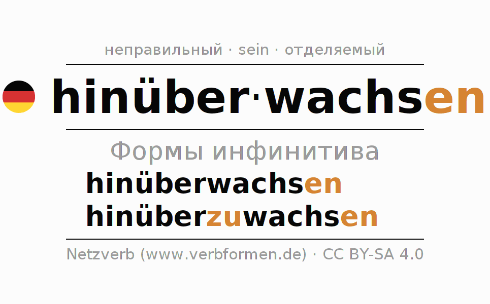 Этот глагол hinüberwachsen полностью спрягается во всех лицах и числах Инфинитив Презенс Перфект.