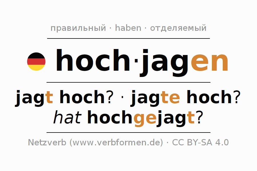 Этот глагол hochjagen полностью спрягается во всех лицах и числах Инфинитив Презенс Перфект.