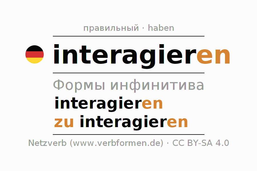 Этот глагол interagieren полностью спрягается во всех лицах и числах Инфинитив Презенс Перфект.