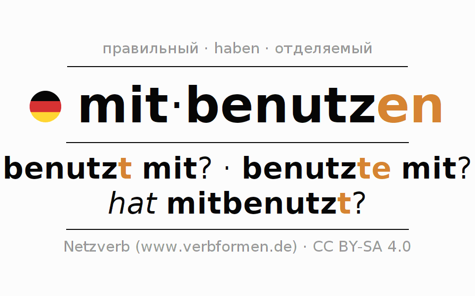 Этот глагол mitbenutzen полностью спрягается во всех лицах и числах Инфинитив Презенс Перфект.