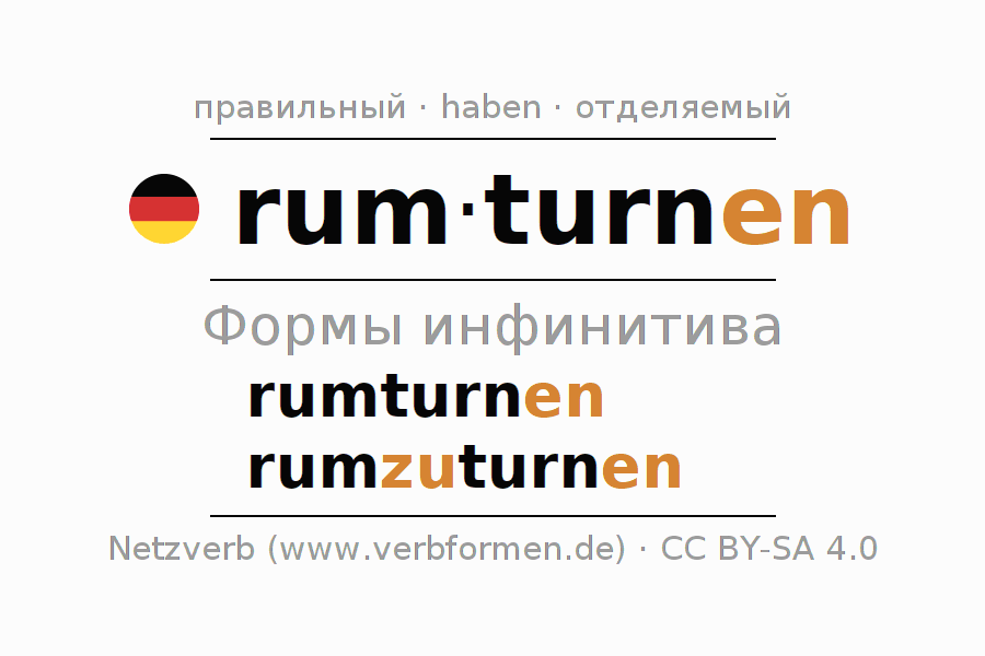 Этот глагол rumturnen полностью спрягается во всех лицах и числах Инфинитив Презенс Перфект.