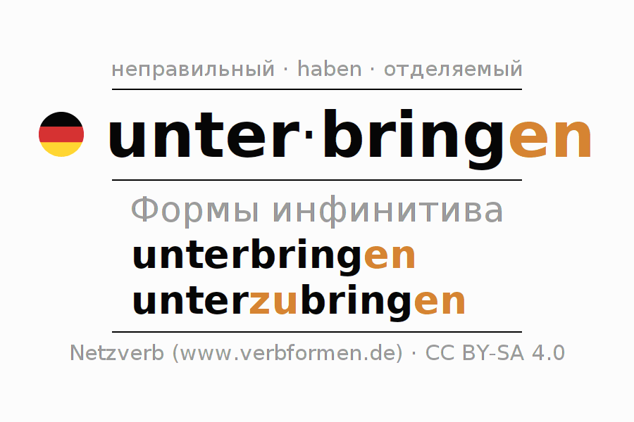 Этот глагол unterbringen полностью спрягается во всех лицах и числах Инфинитив Презенс Перфект.