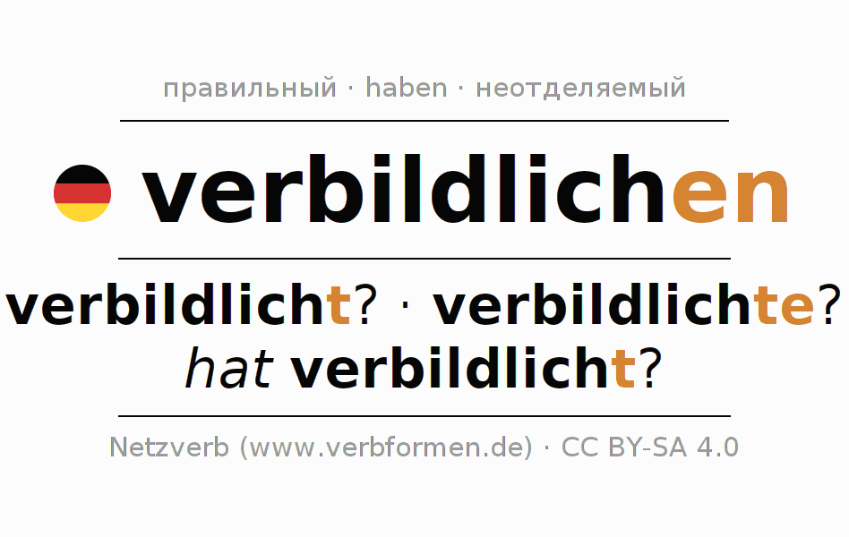 Этот глагол verbildlichen полностью спрягается во всех лицах и числах Инфинитив Презенс Перфект.