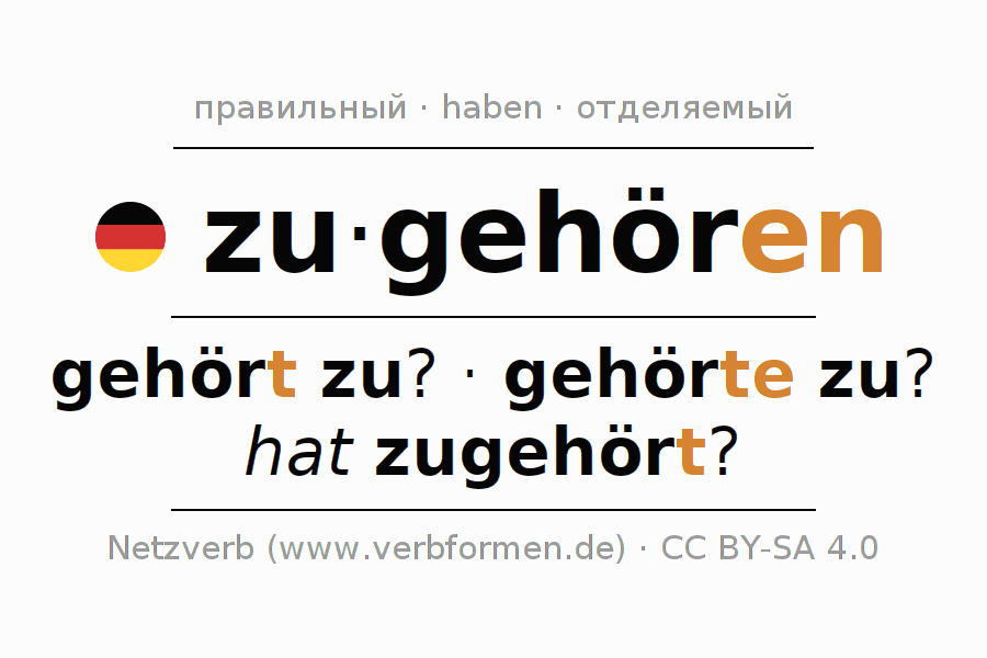 Этот глагол zugehören полностью спрягается во всех лицах и числах Инфинитив Презенс Перфект.