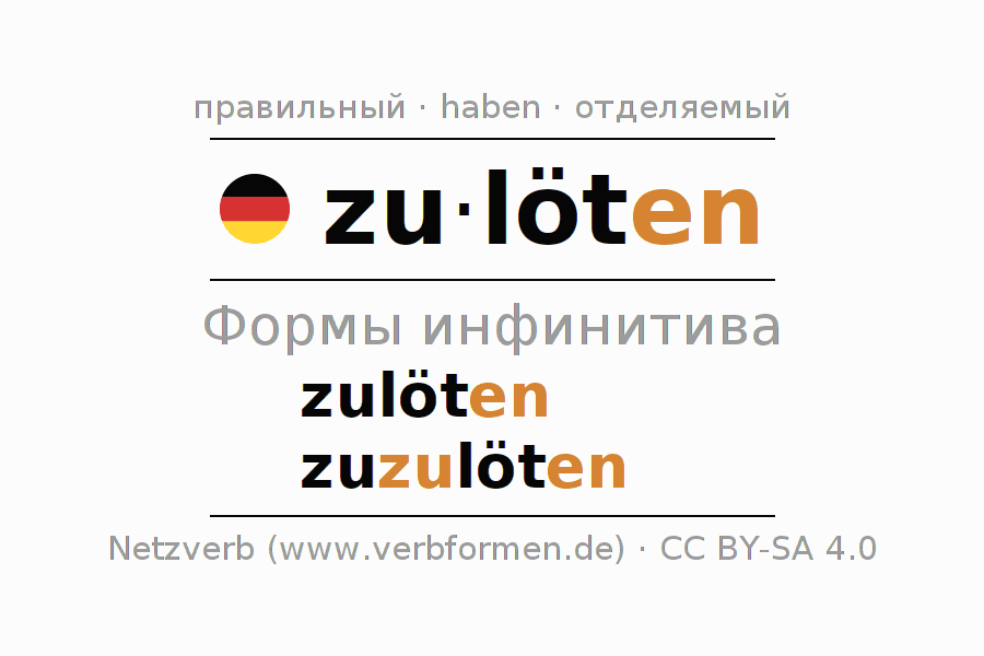 - Образование Инфинитив zulöten
