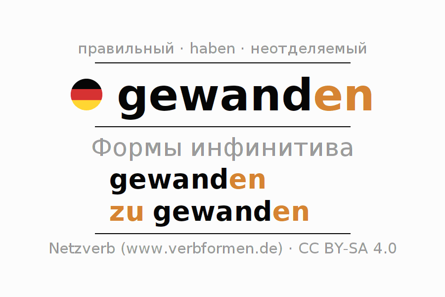 Этот глагол gewanden полностью спрягается во всех лицах и числах Инфинитив Презенс Перфект.