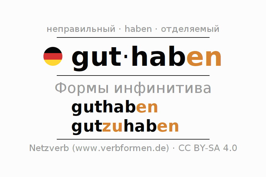 Этот глагол guthaben полностью спрягается во всех лицах и числах Инфинитив Презенс Перфект.