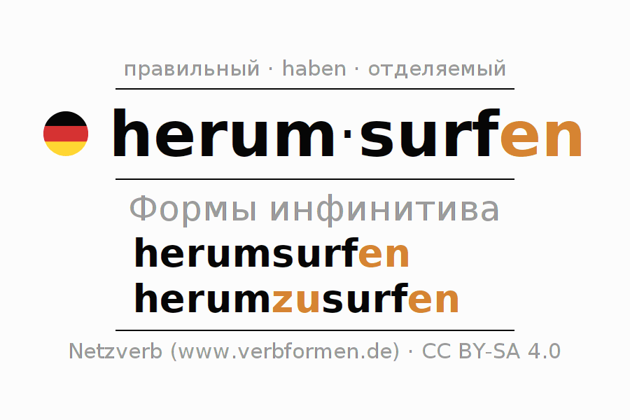 Инфинитивы herumsurfen (блуждать по интернету, серфить): herumsurfen, herumzusurfen