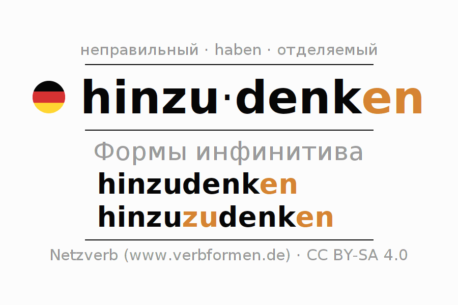 Инфинитивы hinzudenken (дополнять): hinzudenken, hinzuzudenken