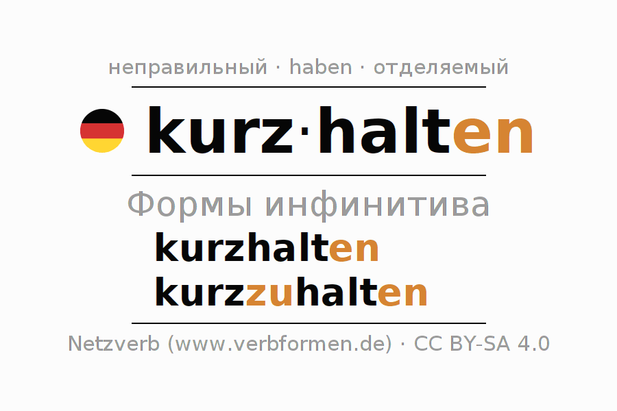 Этот глагол kurzhalten полностью спрягается во всех лицах и числах Инфинитив Презенс Перфект.