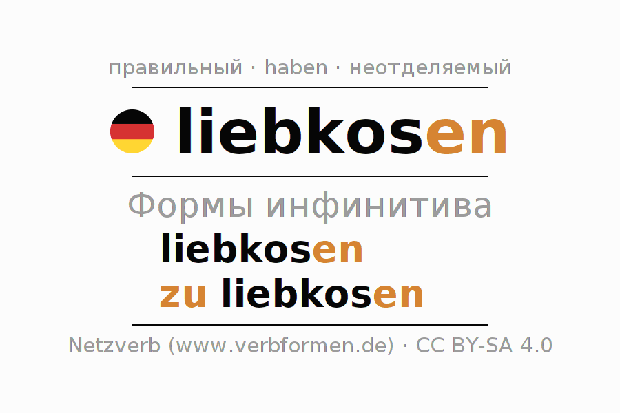Этот глагол liebkosen полностью спрягается во всех лицах и числах Инфинитив Презенс Перфект.