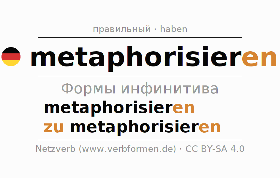 Инфинитивы metaphorisieren (метафоризировать): metaphorisieren, zu metaphorisieren