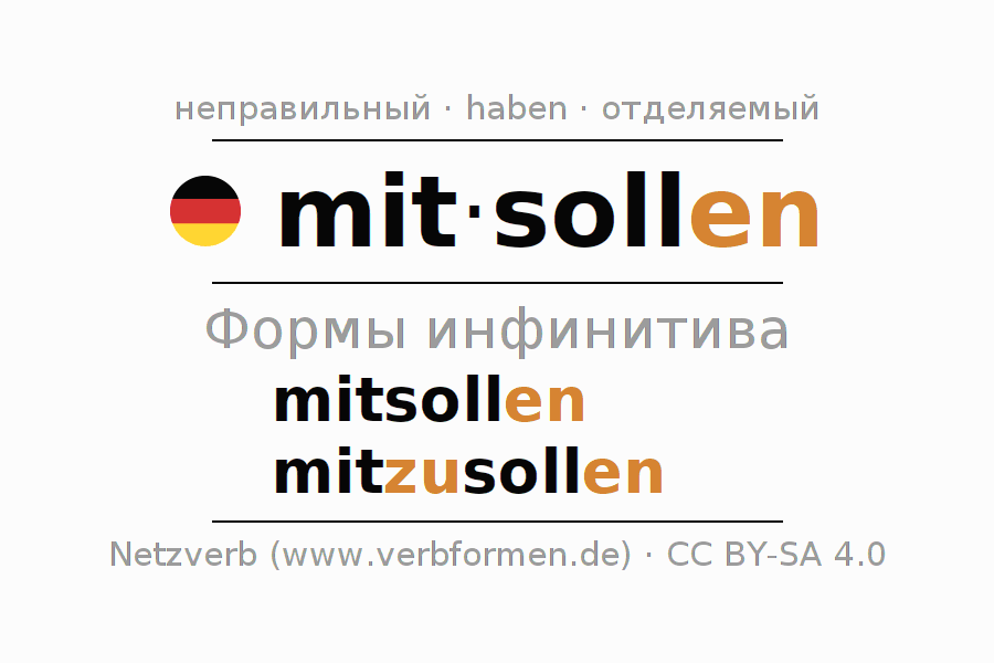 Этот глагол mitsollen полностью спрягается во всех лицах и числах Инфинитив Презенс Перфект.