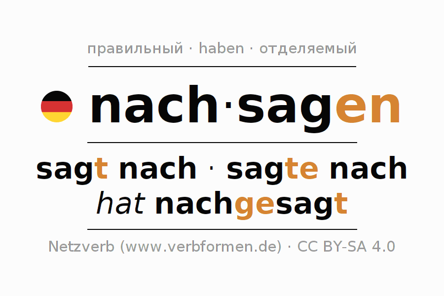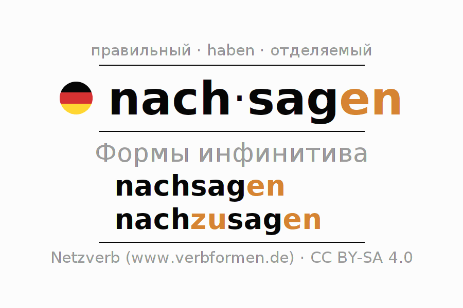 Этот глагол nachsagen полностью спрягается во всех лицах и числах Инфинитив Презенс Перфект.