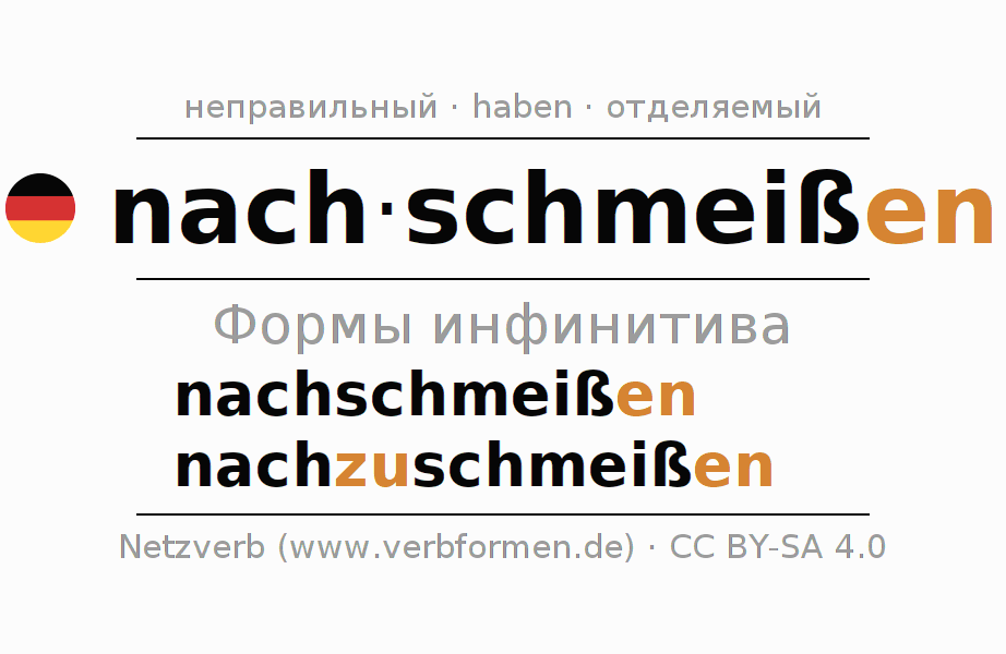 Инфинитивы nachschmeißen (бросать, подбрасывать): nachschmeißen, nachzuschmeißen