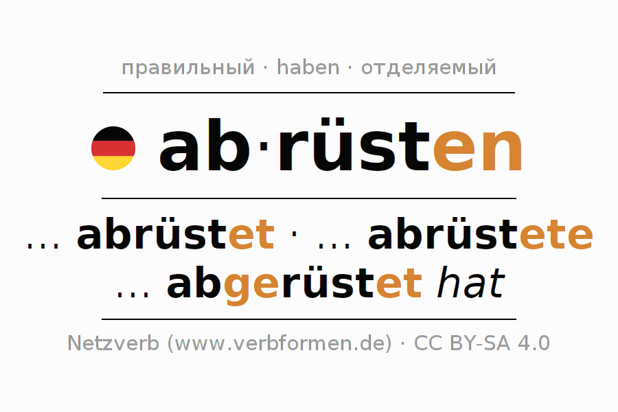 Этот глагол abrüsten полностью спрягается во всех лицах и числах Инфинитив Презенс Перфект.