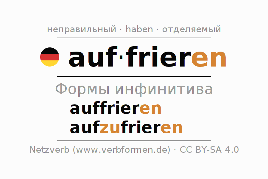 Этот глагол auffrieren (hat) полностью спрягается во всех лицах и числах Инфинитив Презенс Перфект.