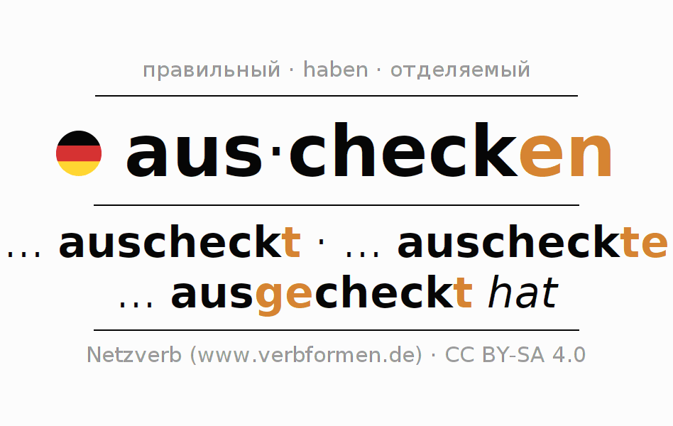 - Как спрягается auschecken в Инфинитив?