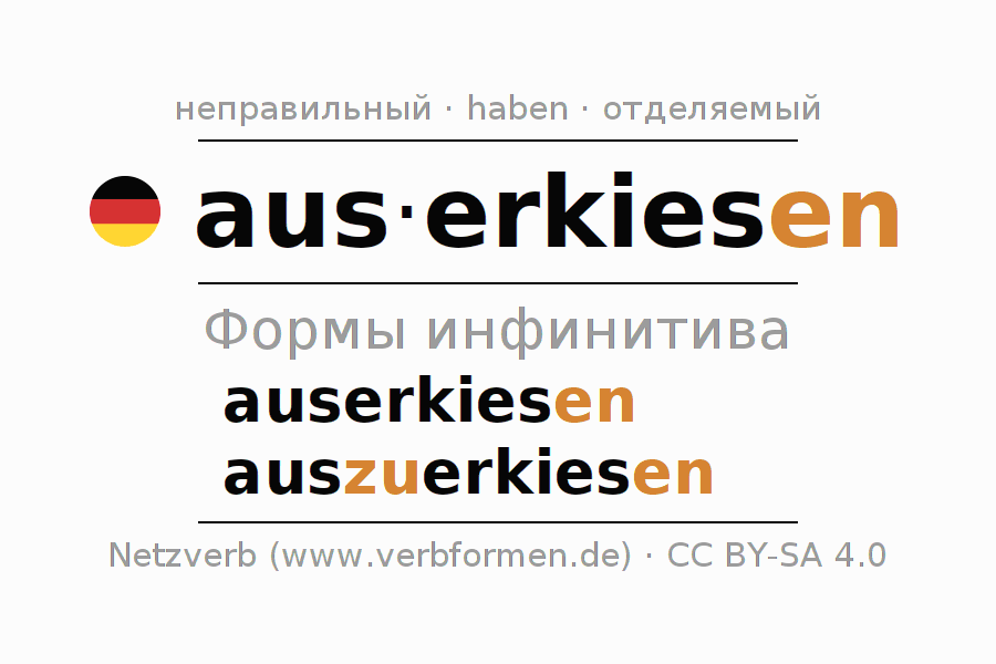Этот глагол auserkiesen полностью спрягается во всех лицах и числах Инфинитив Презенс Перфект.