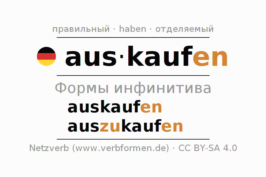 Этот глагол auskaufen полностью спрягается во всех лицах и числах Инфинитив Презенс Перфект.