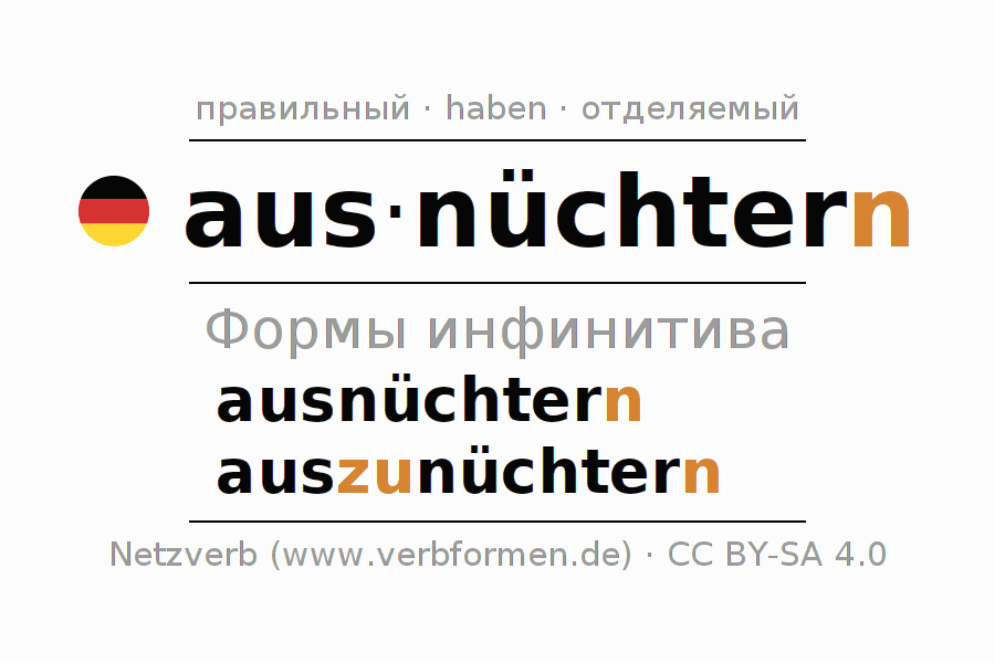 Этот глагол ausnüchtern полностью спрягается во всех лицах и числах Инфинитив Презенс Перфект.