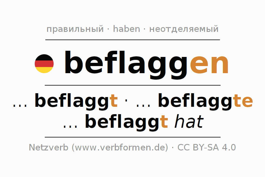 Этот глагол beflaggen полностью спрягается во всех лицах и числах Инфинитив Презенс Перфект.