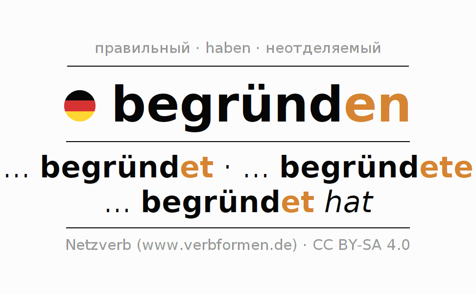 Этот глагол begründen полностью спрягается во всех лицах и числах Инфинитив Презенс Перфект.