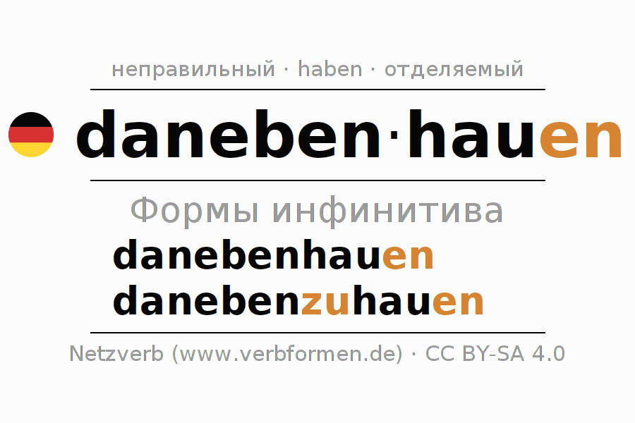 Этот глагол danebenhauen (unr) полностью спрягается во всех лицах и числах Инфинитив Презенс Перфект.