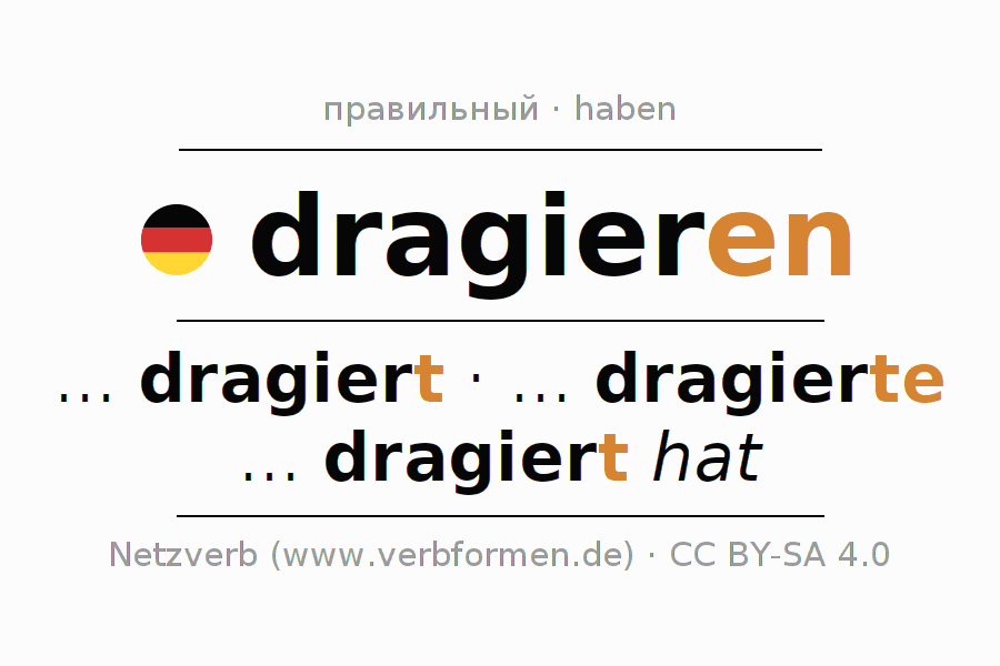 Этот глагол dragieren полностью спрягается во всех лицах и числах Инфинитив Презенс Перфект.