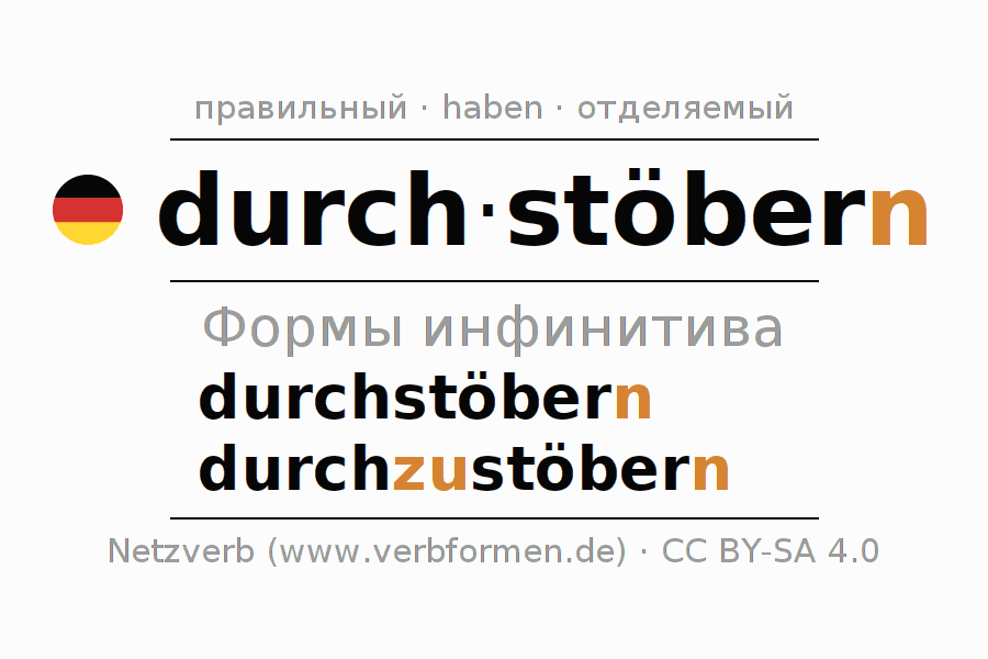 Этот глагол durch-stöbern полностью спрягается во всех лицах и числах Инфинитив Презенс Перфект.
