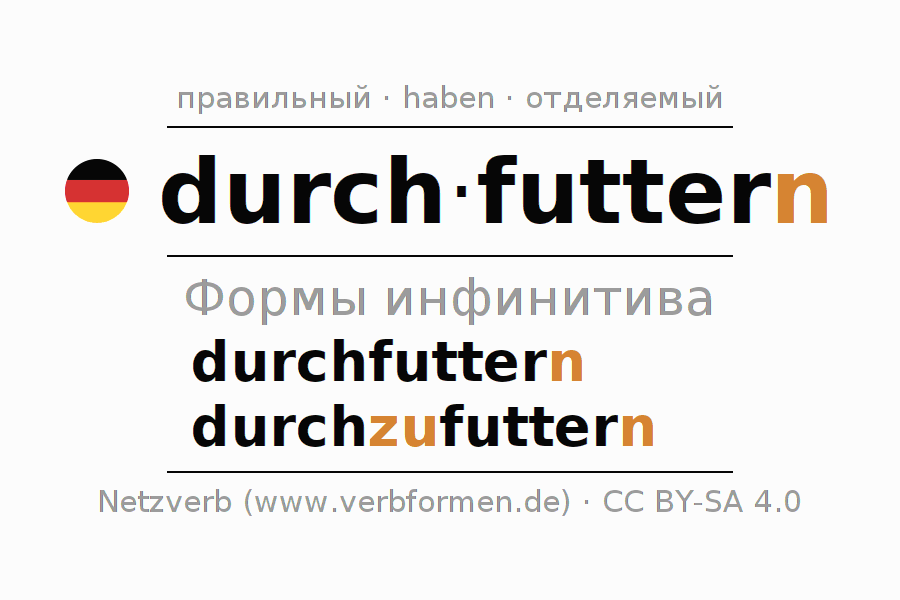 Этот глагол durchfuttern полностью спрягается во всех лицах и числах Инфинитив Презенс Перфект.