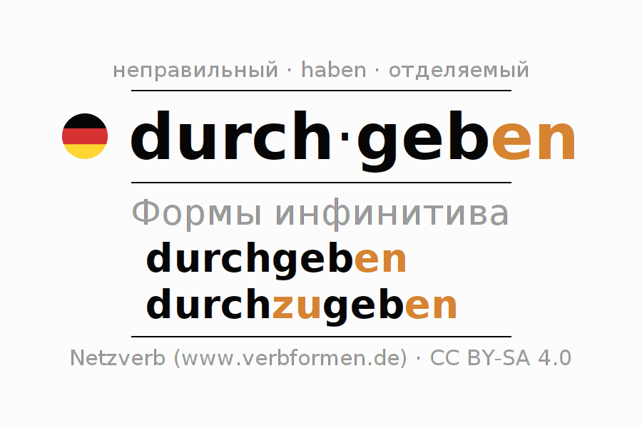 - Образование Инфинитив durchgeben