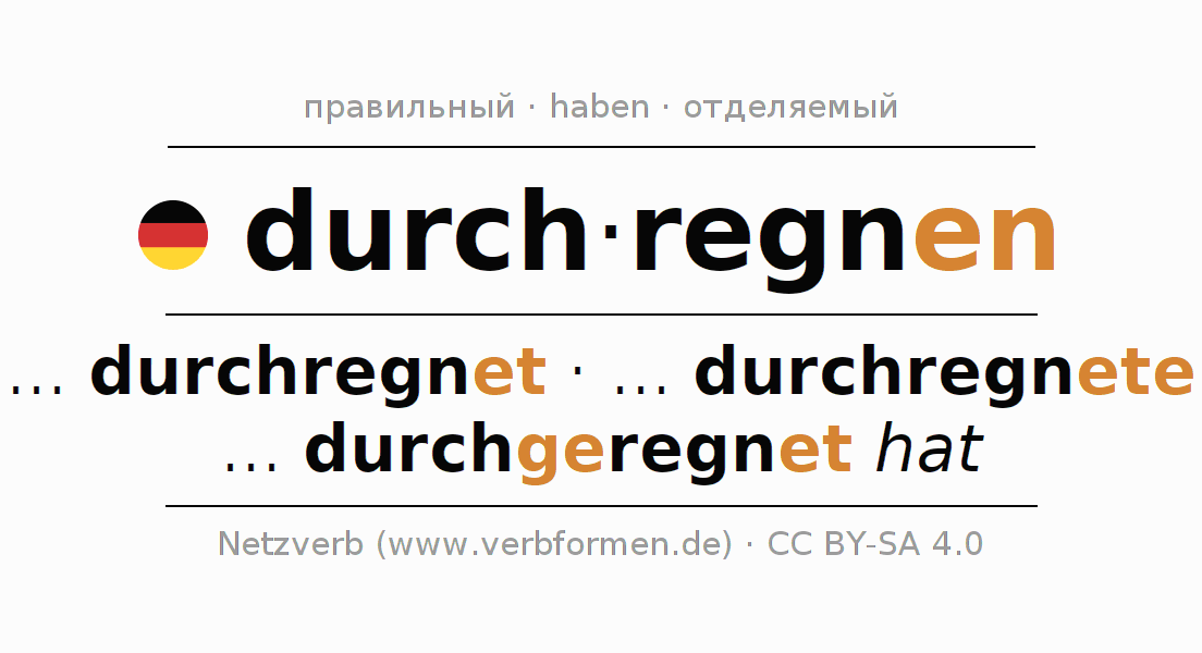 Этот глагол durchregnen полностью спрягается во всех лицах и числах Инфинитив Презенс Перфект.
