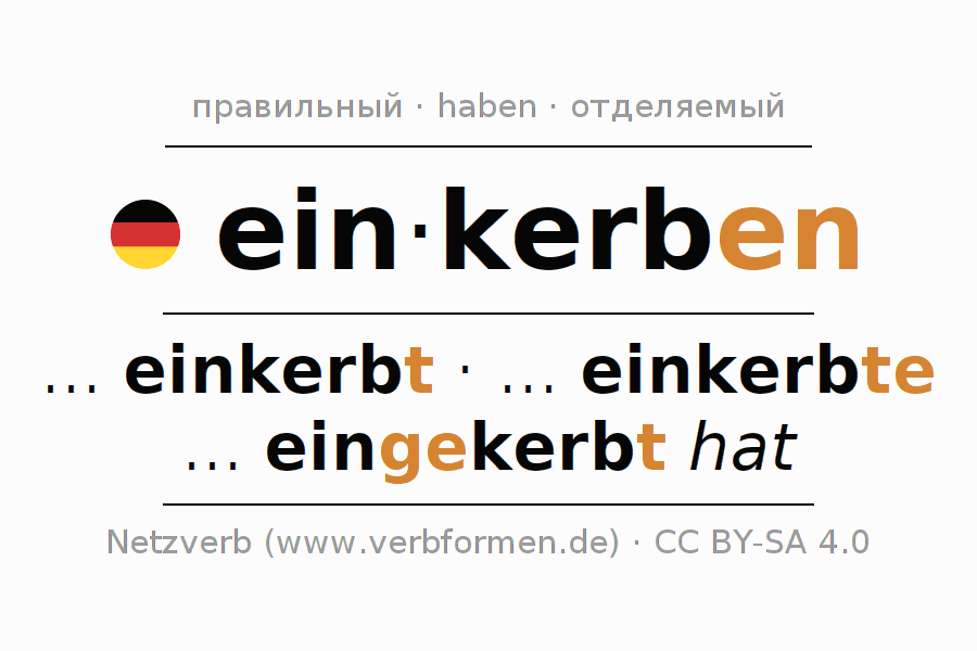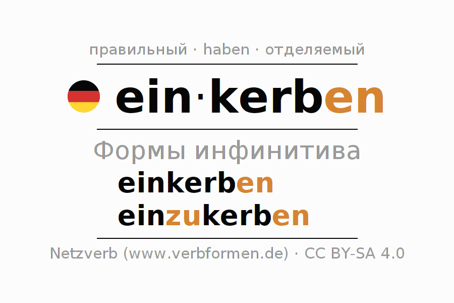 Этот глагол einkerben полностью спрягается во всех лицах и числах Инфинитив Презенс Перфект.