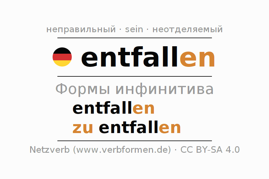 Этот глагол entfallen полностью спрягается во всех лицах и числах Инфинитив Презенс Перфект.