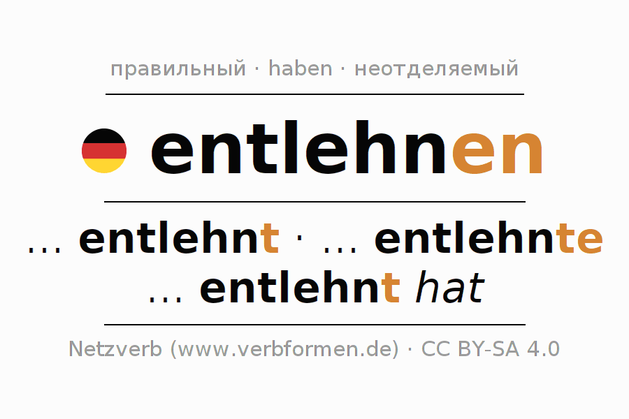 Этот глагол entlehnen полностью спрягается во всех лицах и числах Инфинитив Презенс Перфект.